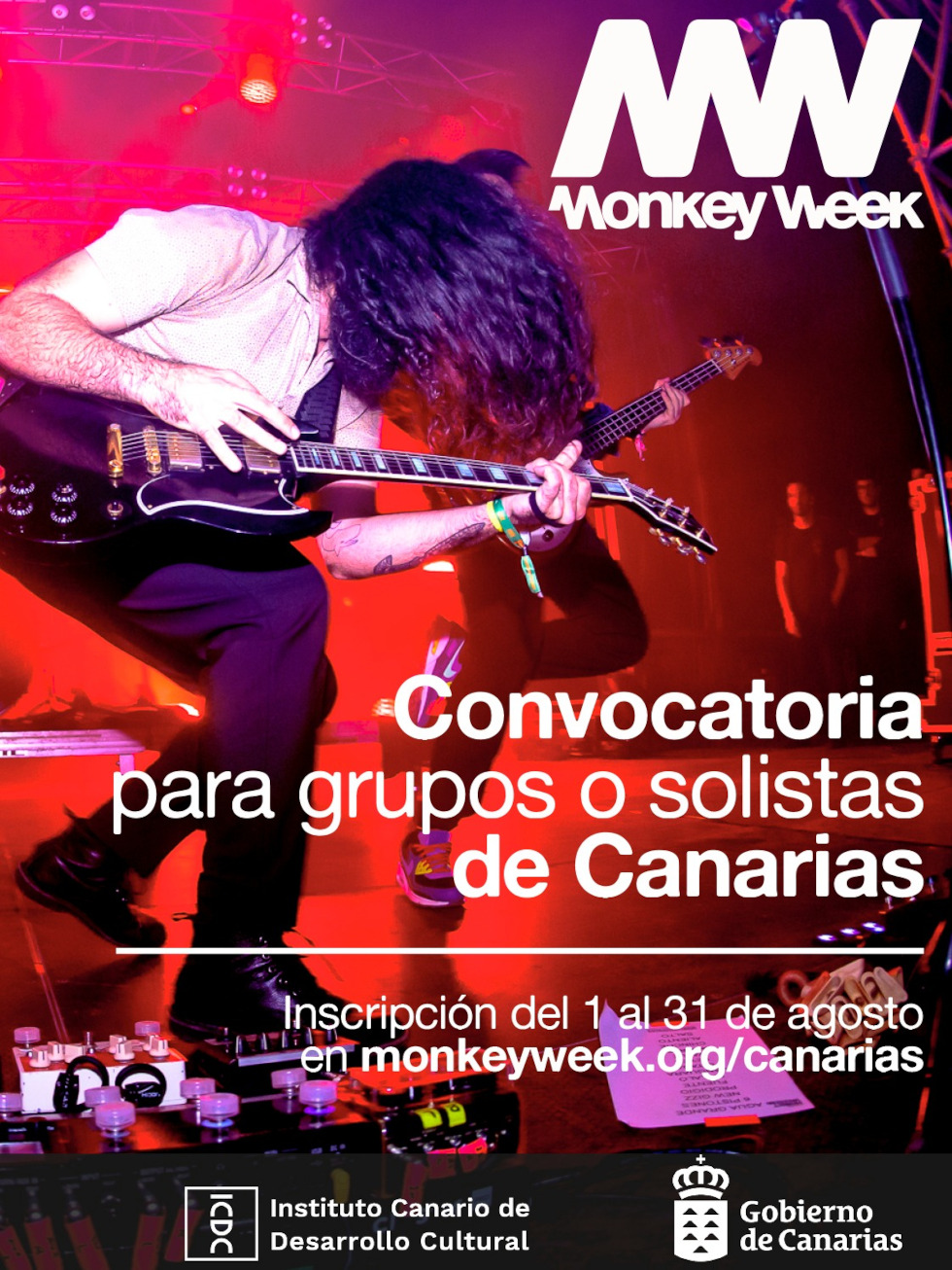 La convocatoria está abierta hasta el 31 de agosto y supone el pago de hasta 400 euros por artista o banda seleccionada, entre otras ventajas, más el alojamiento. Se puede obtener más información en el enlace monkeyweek.org/canarias/.