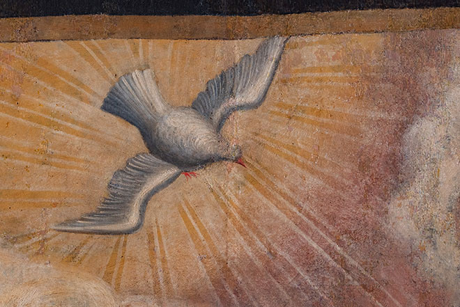 A continuación, se realiza la restauración de la pérdida pictórica, esto es, la recuperación de todo aquello que el paso del tiempo ha robado a la pieza. En el caso de las tres obras de la ermita del Valle de Santa Inés, el deterioro parece haber sido producido por una vía de agua y la humedad: largas franjas verticales, por donde cabe suponer pasó el agua, interrumpían la obra dejando un cuadro donde, por fracciones, la pintura había casi desaparecido. Hoy no queda rastro de ese vacío.