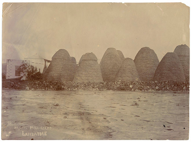 Imagen de 1890 aproximadamente de unos pajeros en Lanzarote, una estructura muy común en el paisaje agrícola antiguo de la Isla. Fotografía cedida por el Archivo de fotografía histórica de Canarias, del Cabildo de Gran Canaria-FEDAC.