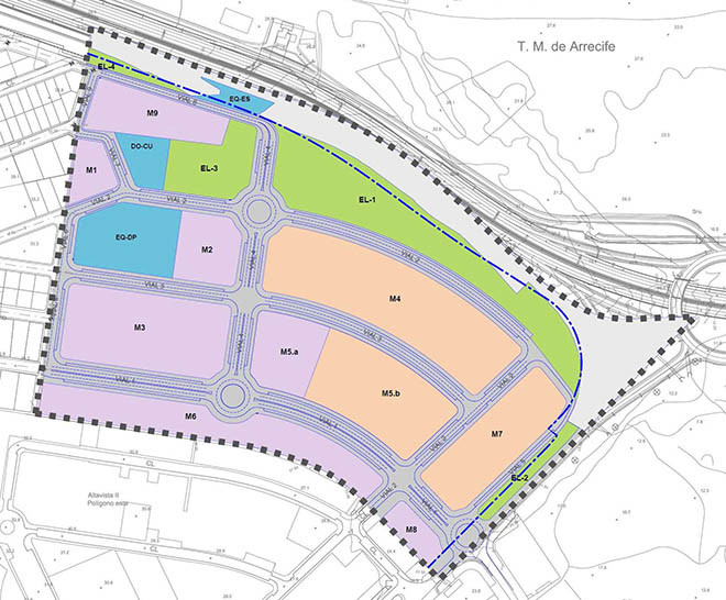 En el plan parcial presentado se respetan también los 11.167 metros cuadrados de un sistema general adscrito en el Plan General para compensar a los propietarios del suelo del campo de fútbol de Altavista, entre el actual instituto y el colegio Los Geranios, unos terrenos por los que el Ayuntamiento de Arrecife se ha enfrentado a pleitos judiciales millonarios.