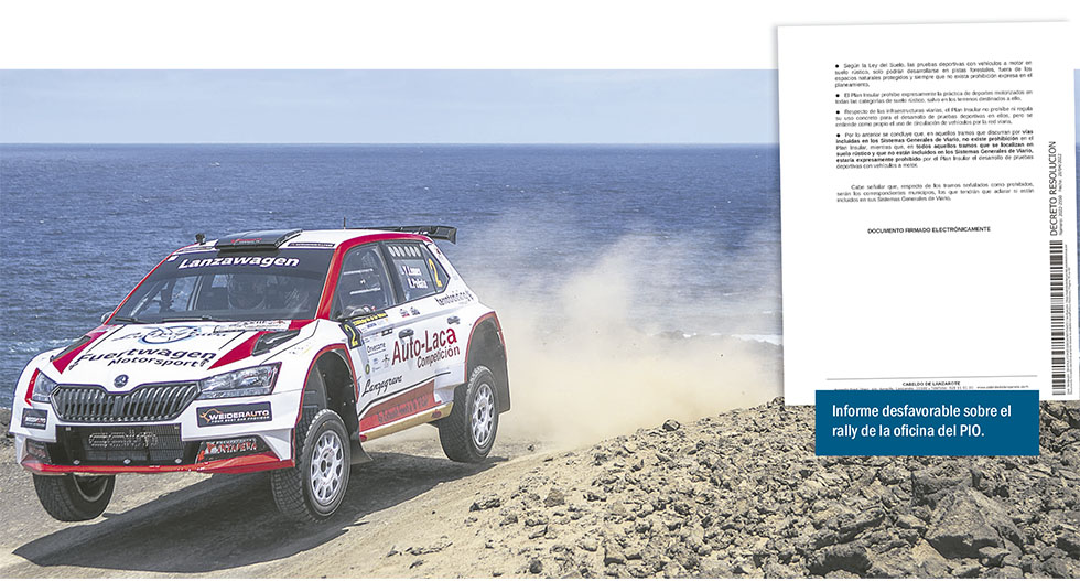 La Consejería concluye que solo caben pruebas a motor como el rally en las carreteras y pistas catalogadas como sistemas generales viarios. De esta manera, “en todos aquellos tramos que se localizan en suelo rústico” y que no son sistemas generales viarios “estaría expresamente prohibido por el Plan Insular el desarrollo de pruebas deportivas con vehículos a motor”.