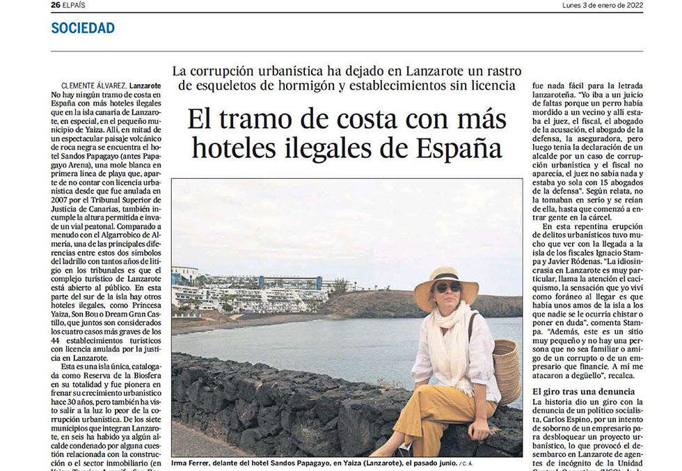 Ha pasado tanto tiempo que han cambiado muchas cosas. Las portadas de El País, ni de ningún otro periódico, tienen el efecto que tenían. La portada de la edición digital no es lo mismo. Ha pasado tanto tiempo que ya ni Asolan es Asolan, disfrazada dentro de la federación Turística. En 2008, cuando El País habló de que una Marbella emergía en Lanzarote, se reunieron ese mismo día de urgencia con la presidenta del Cabildo, preocupados por el daño a la imagen de la Isla.