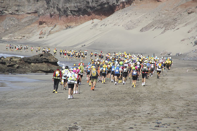 La primera edición de la Media Maratón des Sables de Fuerteventura suma 120 kilómetros repartidos en tres etapas que los 330 corredores, con edades comprendidas entre los 18 y 77 años, deberán superar con autonomía alimentaria.