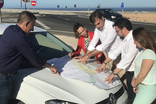 Durante la visita al tramo pendiente de tramitación, Antona y Enseñat pudieron comprobar la cantidad de tráfico que soporta la vía así como los tramos pendientes de redacción de proyecto por parte del Cabildo de Fuerteventura y el Gobierno de Canarias.