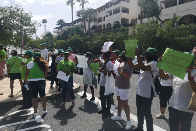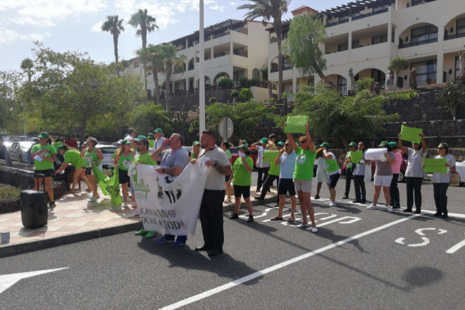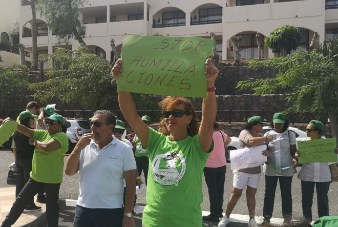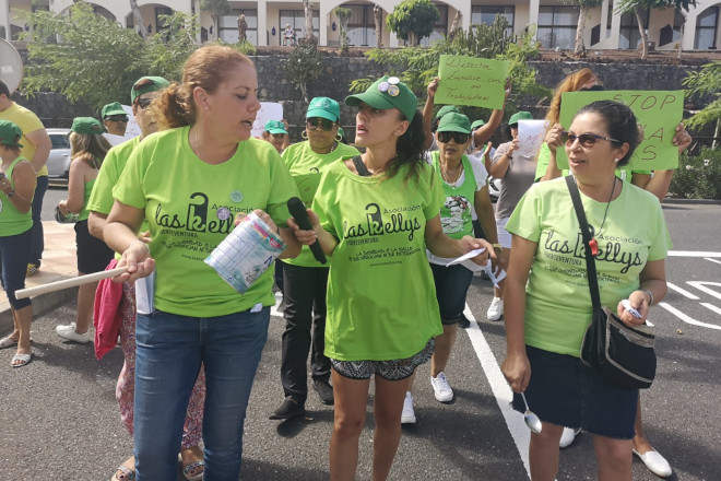 Así fue la protesta de las kellys a las puertas del Barceló Jandía Playa: “Stop humillaciones”