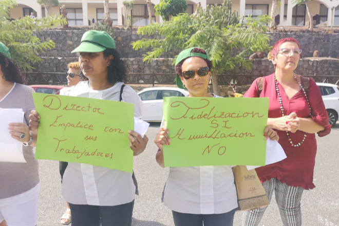 Las afueras del hotel Barceló Jandía Playa acogieron este jueves por la tarde una concentración de protesta convocada por las kellys tras las manifestaciones realizadas por el director del establecimiento, que en una grabación sostiene que “quienes se dan de baja son los mediocres”.