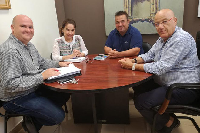 El presidente de la patronal turística de Fuerteventura, Antonio Hormiga, acompañado del gerente de la entidad, Mario de la Cruz, ha mantenido un encuentro recientemente con el consejero de Transportes del Cabildo insular, José Roque, y la técnico de la Consejería, Mapi Sánchez, para abordar distintas cuestiones relacionadas, principalmente, con los servicios de taxi en el aeropuerto majorero, las líneas de guaguas y la ampliación del horario del aeródromo.