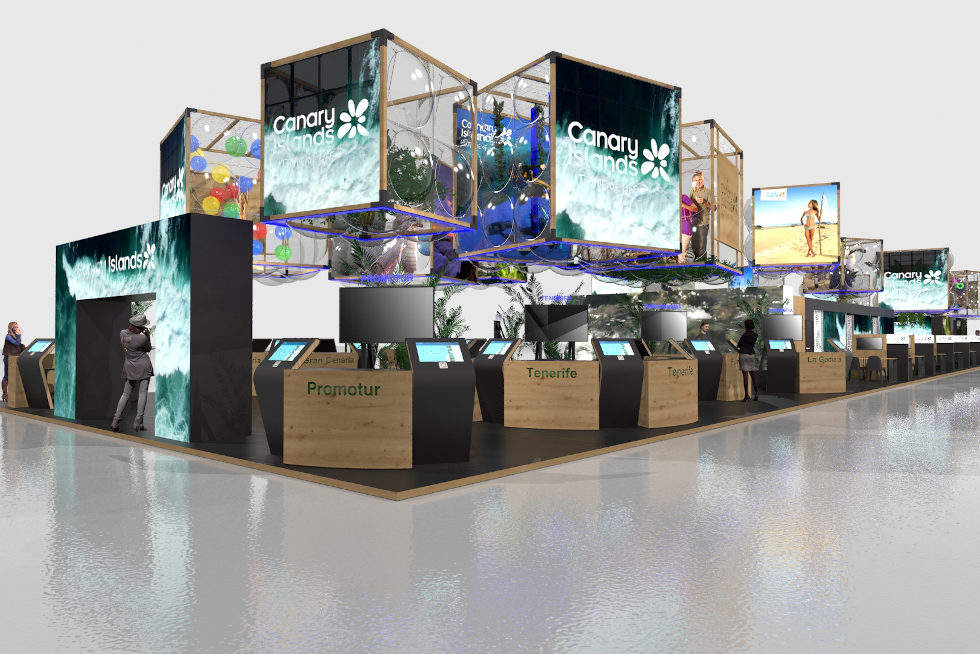 Este año, el stand, cofinanciado con fondos Feder, presenta un diseño completamente nuevo, con varios reclamos visuales para generar notoriedad, el principal, los citados 16 cubos aéreos, que proyectarán la oferta del archipiélago de los cinco segmentos prioritarios: sol y playa, incluyendo familias, turismo activo, de naturaleza, de cultura y patrimonio y LGTBI, en línea con la estrategia de comunicación de la marca.