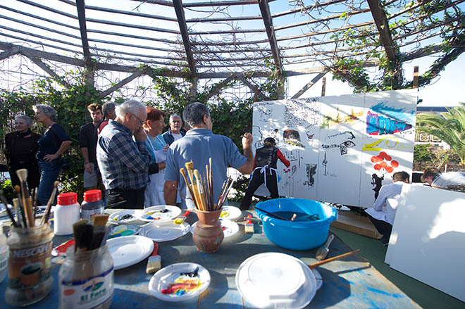 El pasado 19 de septiembre viejos amigos de Mané cruzaron el umbral de la galería para recordar a su mecenas. Junto a ellos, nuevos artistas que han enriquecido con sus obras los fondos del centro en los últimos años. Unos y otros cogieron los pinceles por un momento y dejaron su sello artístico en un gran mural. El Centro de Arte Casa Mané pintó ese día un nuevo capítulo en su historia.