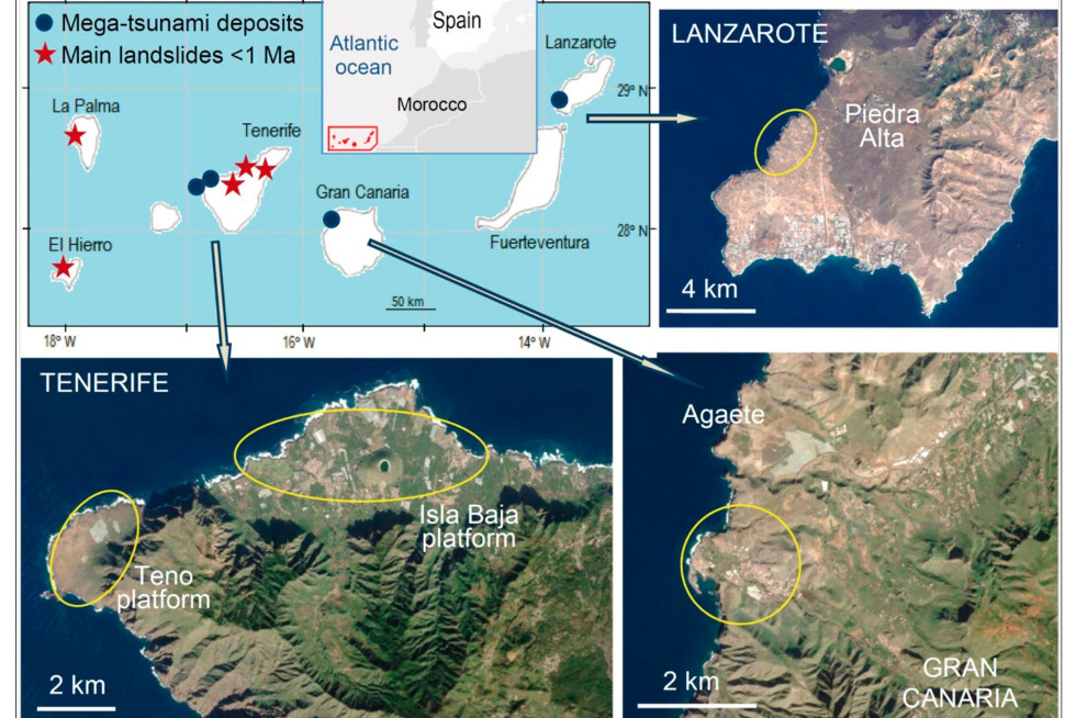 Según los resultados de la edad global de los depósitos, las principales fuentes de tsunamis en las Islas Canarias durante el último millón de años pueden haber sido megadeslizamientos que afectaron los flancos del edificio volcánico de Tenerife donde, al menos, siete grandes eventos han ocurrido en este período: uno en el valle de Icod, tres en La Orotava, dos en Güímar y uno en Micheque.