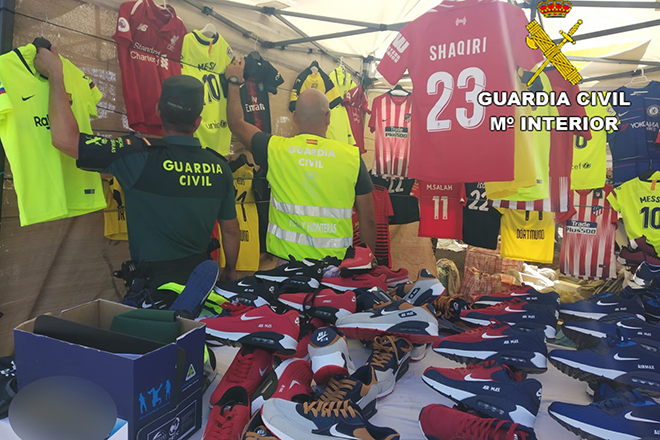 La Guardia Civil incautó 1.664 artículos falsificados, como camisetas, zapatillas o equipaciones de fútbol de varias marcas, con un valor de venta al público de 110.190 euros