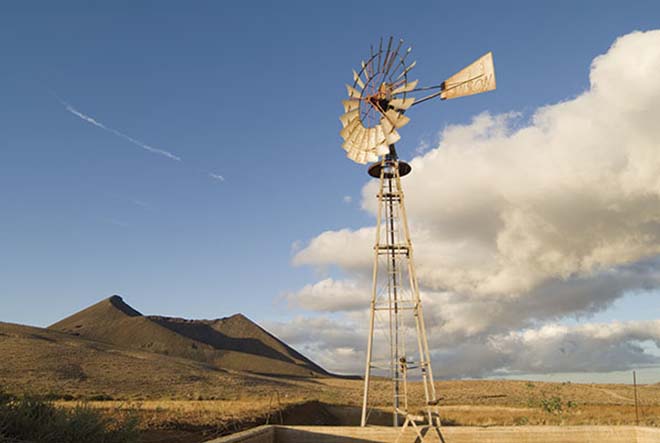 Los ‘molinos Chicago’ o aeromotores se han utilizado tradicionalmente en Fuerteventura para extraer agua destinada al riego de cultivos como alfalfa, hortalizas y millo.