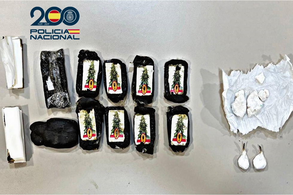 Han sido intervenidos 16.7 gramos de cocaína base (374 monodosis), dos gramos de cocaína y 281 gramos de hachís.