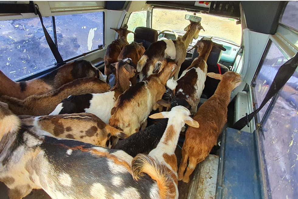 Posteriormente, los agentes actuantes acuden a un Barranco del municipio de Agüimes realizando una batida por las inmediaciones, cuando al llegar a un pozo abandonado, avistan el vehículo mixto con las dos personas que se habían marchado de la parada de guaguas, transportando desde el pozo hasta dicho vehículo varias cabras.