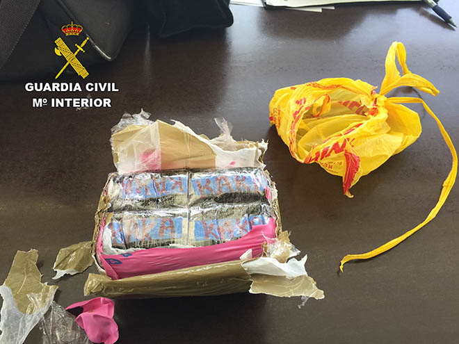 La Guardia Civil del Destacamento del Puerto de la Luz, en Gran Canaria, detuvo el domingo pasado a dos personas de iniciales Y.T.G., varón de 36 años de edad, y N.A.V., mujer de 37 años, ambos de nacionalidad española, como presuntos autores de un delito contra la salud pública, al tener en su poder un paquete con un kilogramo de hachís.