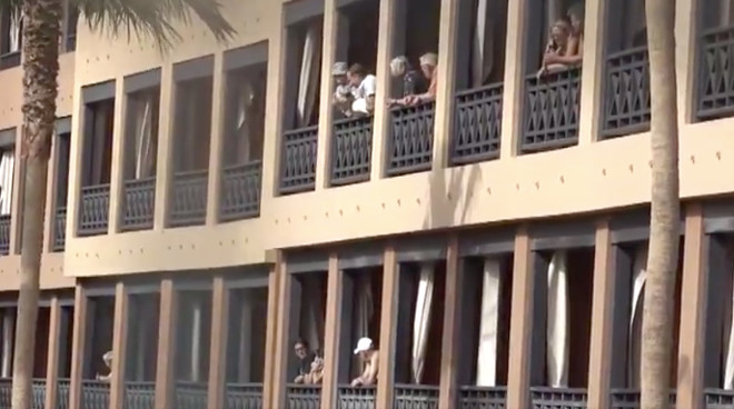 Estos dos turistas italianos permanecían desde ayer dentro del hotel, cuyos clientes (unos 700) por el momento tienen prohibido salir al exterior por decisión de las autoridades sanitarias.