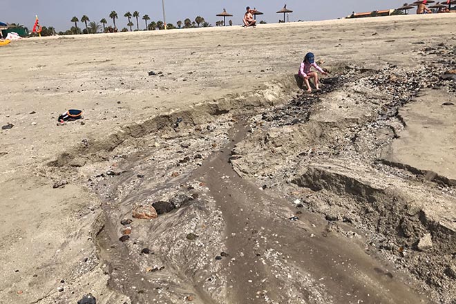 De hecho, hay zonas de la playa con socavones, piedras, desaparición de la capa de arena superficial, desniveles y lodos en el fondo del mar, entre otros, siendo un espacio muy frecuentado por bañistas y usuarios de deportes náuticos.