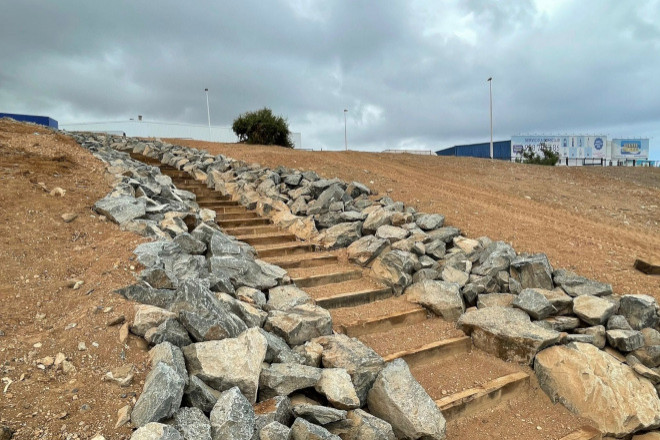 El talud del Polígono Industrial de Jinámar, ubicado en el margen izquierdo del Barranco Real de Telde, ha sido completamente rehabilitado, gracias a las obras que ha impulsado la Consejería de Política Territorial del Cabildo de Gran Canaria y en las que se han invertido 265,342 euros, para poner fin al estado de abandono de un espacio de gran impacto paisajístico.