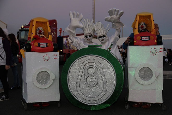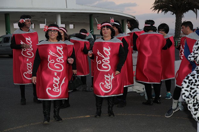Reinas, murgas, cafeteras, conguitos, latas de cocacola y todo tipo de disfraces y artilugios desfilaron este sábado por las calles de Antigua en el Coso Carnavalero.
