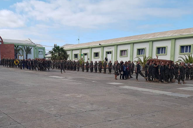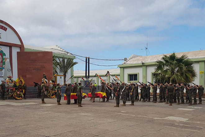 El acto en honor de los dos militares fallecidos el viernes por la tarde se celebró en el patio de armas del cuartel de Puerto del Rosario, que ha acogido los féretros, en presencia del teniente general Carlos Palacios, jefe del Mando de Canarias, de la delegada del Gobierno, Mercedes Roldós, y del consejero de Justicia del Gobierno de Canarias, José Miguel Barragán.