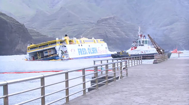 Sus declaraciones han tenido lugar cuando se cumple el cuarto día desde que el barco encallara cuando iba a atracar en Agaete, en su último servicio de la jornada entre Tenerife y Gran Canaria, al ser empujado por una súbita racha de viento contra una baja cercana al puerto.