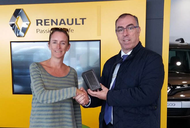 Philine Ferdinande Morgenstern, compradora de un Renault Kangoo durante el mes de diciembre pasado, resultó ganadora del séptimo iPhone 7 de 256 GB que el grupo Juan Toledo sortea por su 50 aniversario.