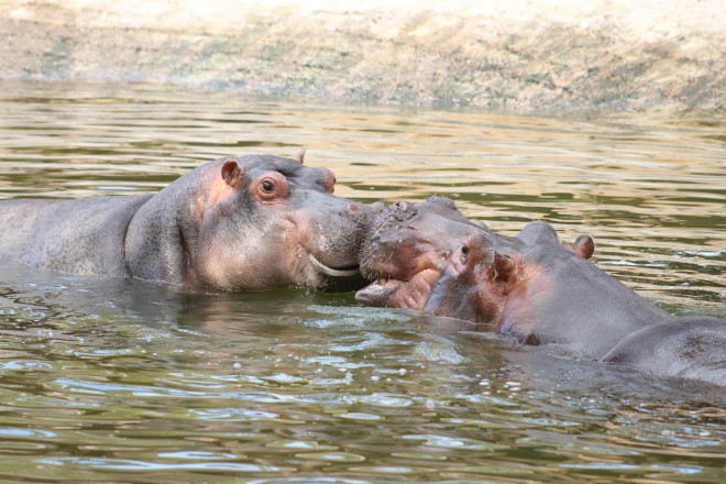 Tras cinco días, y una vez verificado por el equipo veterinario que ninguno de los dos mostraba tensión, se provocó un primer contacto visual en el que se corroboró, por el equipo de etólogos, que ambos animales estaban calmados y se aceptaban, y se procedió a abrir las puertas que les separaban para que interactuaran con total confianza. El proceso fue perfecto y los dos hipopótamos conviven ya en la instalación, dentro de la zona de sabana africana, sin problema alguno.