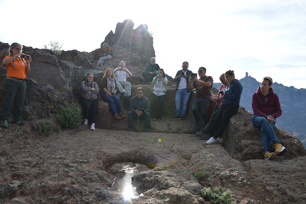 La estación otoñal arrancó con la centenaria cita anual del sol, con la marca al pie del Bentayga que señala su inicio