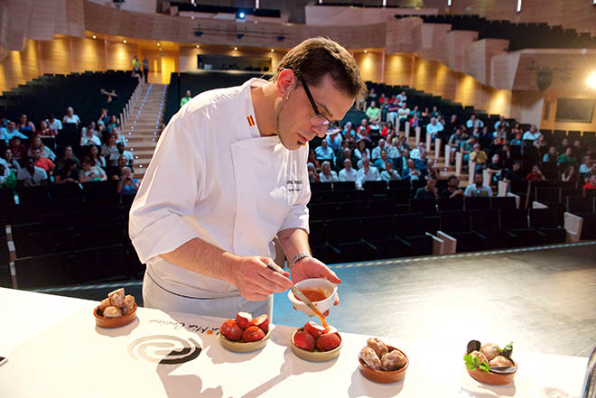 El pastelero, colaborador de la Casa Real española, ofreció al sector, durante la jornada técnica celebrada hoy en el Palacio de Formación y Congresos, nuevas técnicas para que puedan ser utilizadas por ellos y darles, así, a su cocina un toque de vanguardia.