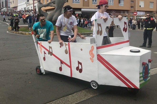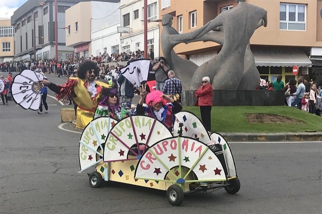 El animado pasacalle tuvo como destino el Auditorio Insular de Puerto del Rosario, donde a las ocho de la tarde dio comienzo el pregón de las fiestas, a cargo del periodista y carnavalero Santiago Travieso Quintana.