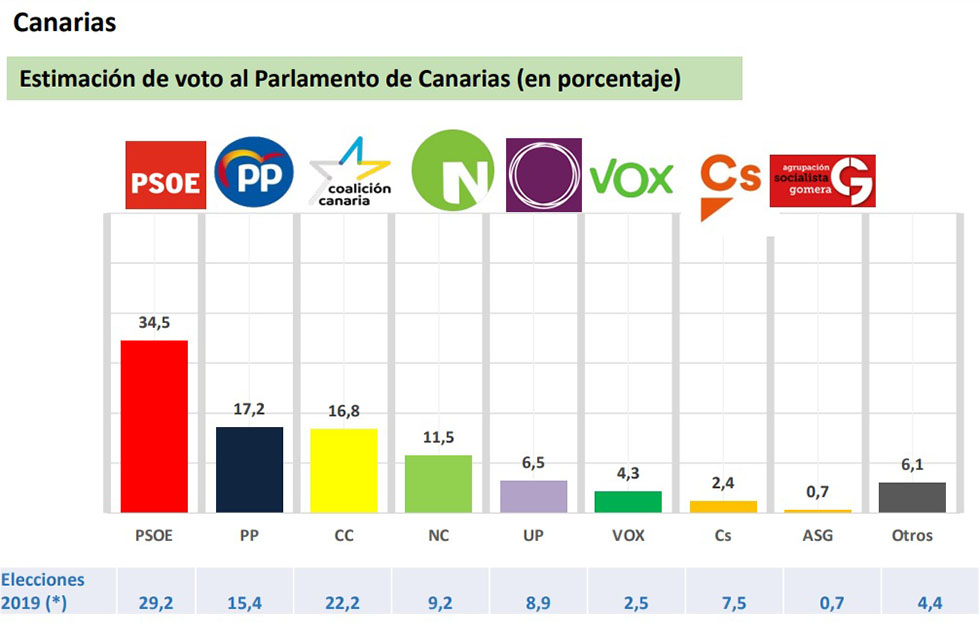 El Sociobarómetro da la victoria al PSOE en Canarias con hasta 33 diputados