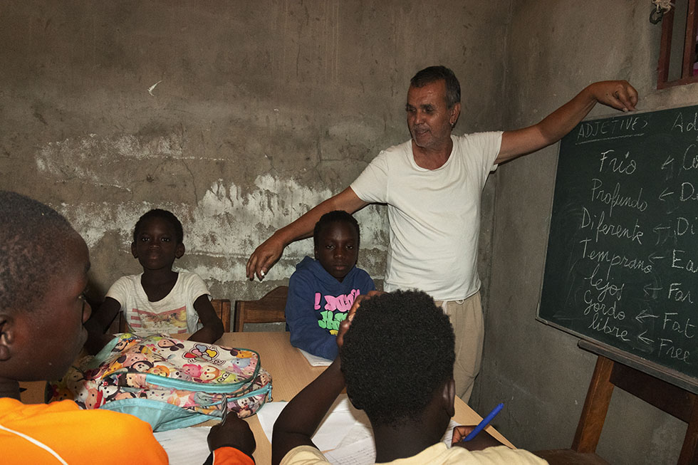 El viaje a Gambia también le ha permitido regresar a la docencia. En 2019 Juambi se despidió de las aulas con la llegada de la jubilación después de treinta años impartiendo clases. Muchos de ellos como profesor de inglés. Al llegar a país africano vio cómo los pequeños le pedían aprender español. La presencia en la zona de muchos españoles despierta pronto el interés de los chicos por hablar español. No costó mucho convencerlo. Por las mañanas daba clases en el orfanato y por las tardes en uno de los colegios. “Tenían unas ansias terribles de aprender. Me buscaban para que les diera clases”, dice con los ojos iluminados.