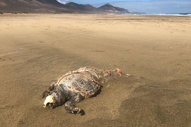 Los efectivos de la Benemérita hallaron el esqueleto de la tortuga, que, al parecer, murió enredada. Asimismo, la Guardia Civil ha comunicado al Ayuntamiento de Pájara y al Cabildo de Fuerteventura el suceso, dado que son los encargados de retirar el esqueleto de la playa.
