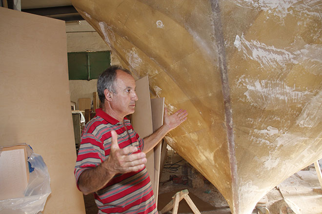 En el taller, una embarcación varada desde hace tiempo espera los permisos para poder salir a flote. A pesar de que la crisis en el sector pesquero y las preferencias por la fibra están dando al traste con este trabajo artesano basado en la madera para confeccionar barcos de pesca o recreo.