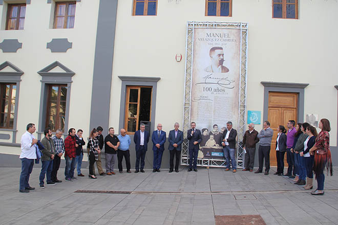 El Cabildo de Fuerteventura celebra el primer centenario del fallecimiento de Manuel Velázquez Cabrera con un gran mural instalado en un lateral de la sede de la Institución insular que fue descubierto el lunes en un acto.