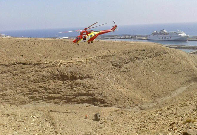 Del mismo modo, el varón quedó en una zona de difícil acceso para los recursos sanitarios, siendo rescatado por el helicóptero del Grupo de Emergencias y Salvamento (GES) que posteriormente lo trasladó a la helisuperficie del Hospital de Fuerteventura.