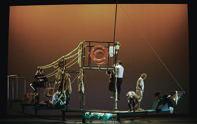 Sobre el escenario, siete actores, ocho personas en el coro y un gran barco que actúa como un actor más. "En las actuales circunstancias es casi una superproducción, es un espectáculo difícil de mover", explica Nacho Cabrera.