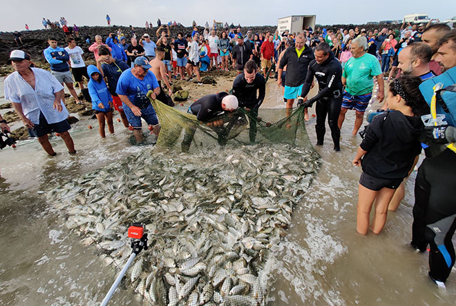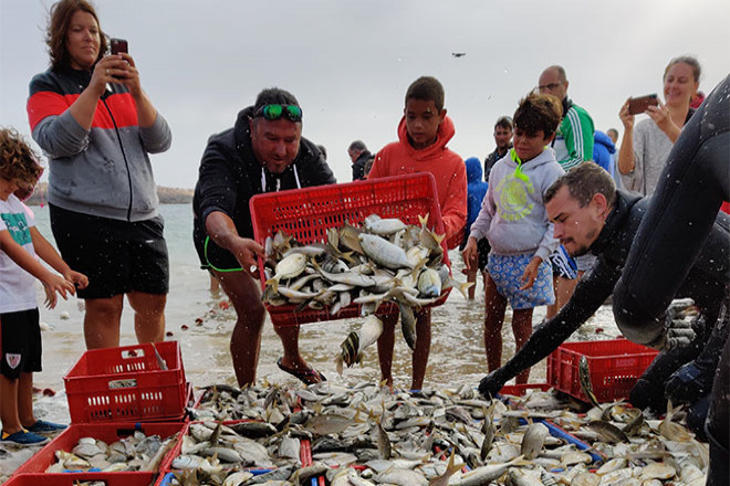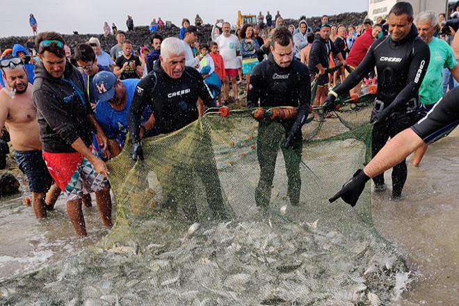 Lo más importante, cuentan los propios vecinos, es que el pescado es para el pueblo. No se comercializa, sino que se preparar y se convida a los asistentes al tradicional asadero de jareas que tendrá lugar el próximo jueves, dentro de las Fiestas del Buen Viaje de El Cotillo. Aunque el chinchorro es un arte de pesca restringido a día de hoy, todavía se mantiene una vez al año esta tradición.