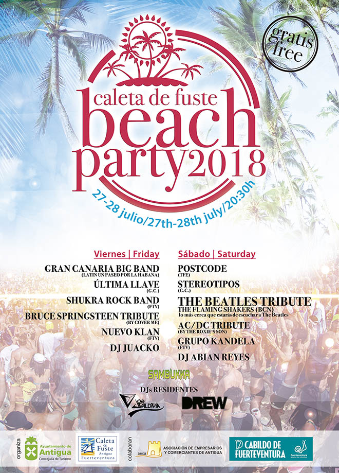 The Beach Party se consolida en Fuerteventura como una de las principales fiestas del verano en la playa, al aire libre y completamente gratuita, cuyo éxito reside no sólo en la calidad de los grupos invitados sino también en las medidas de seguridad coordinadas por la Policía Local, Cuerpos de Seguridad y Emergencias del Estado, Cruz Roja, y voluntarios del Cuerpo de Protección Civil de Antigua.