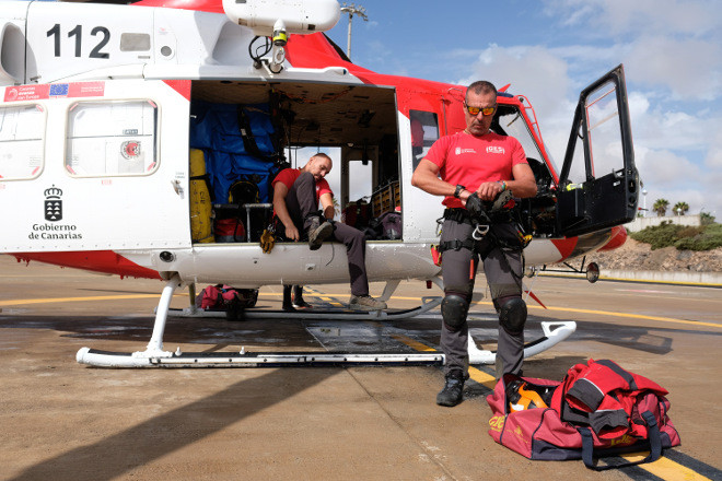 Diario de Fuerteventura acompañó al equipo del GES de las Islas orientales, compuesto por dos pilotos y dos rescatadores por servicio y que registra una actividad trepidante este otoño: este periódico comprobó que no hay tiempo para el descanso.