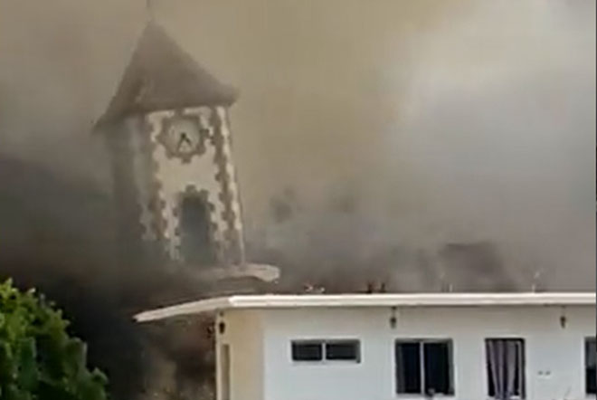 La lava derriba la iglesia de Todoque y el centro de salud