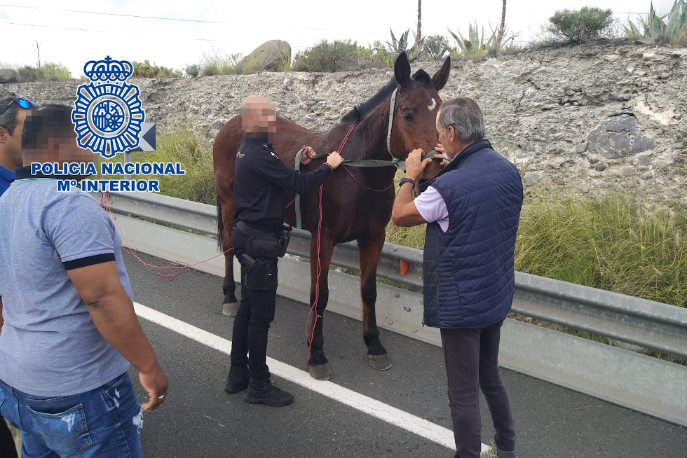 La Policia Nacional intercepta y pone a salvo un caballo sin jinete en una vía de Gran Canaria
