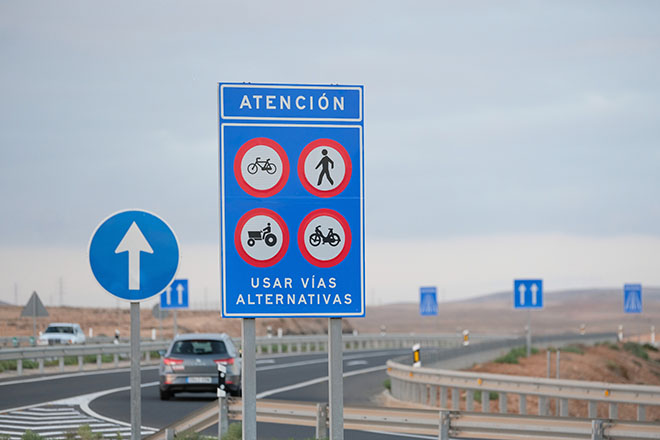 Es el caso de la carretera, hasta ahora denominada FV-1, que sale desde el norte, en Corralejo, dirección sur hacia Puerto del Rosario. Ahora el primer tramo de esta carretera ha pasado a convertirse en autovía, y por lo tanto no se puede utilizar por las bicicletas, ya que las normas de tráfico que se aplican normalmente en todas las autovías por razones de seguridad impiden circular en bicicleta o caminar por ellas.