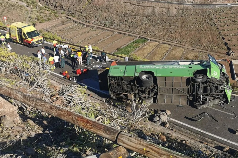 Muere una persona y otras once resultan heridas al volcar un autobús en La Gomera