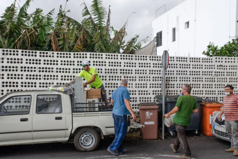 Entre los voluntarios que ayudan a desalojar esta empresa de materiales de construcción se encuentra el propio alcalde de Tijarafe, Marcos Lorenzo, que, con ropa de faena y el rostro cansado, cuenta lo importante que es en estos momentos ayudar a salvar aquellas cosas que en cada vivienda más aprecian.