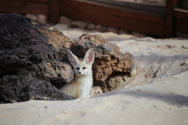 Los zorros fénec habitan en el desierto del Sáhara y en la práctica totalidad del Norte de África. Sus hábitos nocturnos, además de una serie de adaptaciones físicas, le ayudan a soportar el calor del desierto. Como todos los animales de Oasis Park, estos zorros se adaptan perfectamente a la climatología de Fuerteventura.