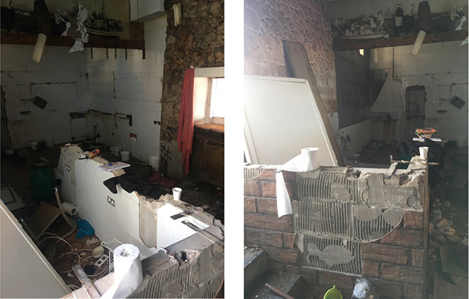 Cuando, a finales de 2018, Iñaki pudo tomar posesión del local, se llevó una desagradable sorpresa. Habían arrancado los sanitarios y la instalación eléctrica, habían inyectado espuma de poliuretano para obstruir las conducciones eléctricas y sanitarias, habían destrozado las paredes, las puertas, los suelos, el techo... El cuadro eléctrico general estaba arrancado. El local parecía el epicentro de un terremoto.