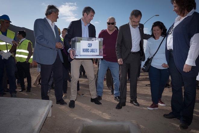 El presidente del Gobierno de Canarias, Fernando Clavijo, ha colocado la primera piedra del nuevo Centro de Educación Infantil y Primaria (CEIP) Morro Jable II, el mayor en construcción en el Archipiélago.