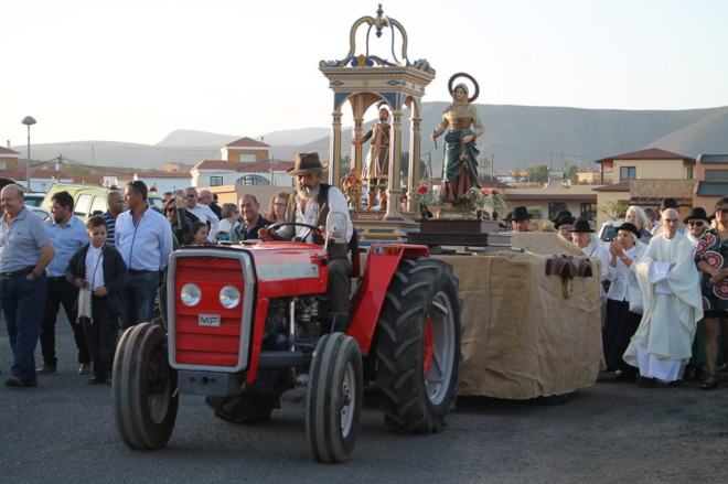 El concejal de Antigua, Juan Cabrera participó en la procesión, que fue recibida en la plaza, donde también se hizo entrega de los premios a los ganadores de juegos de baraja, concursos y gymkanas celebradas durante la fiesta. También actuaron la rondalla del centro de mayores de Antigua y la parranda de Juan Peña.