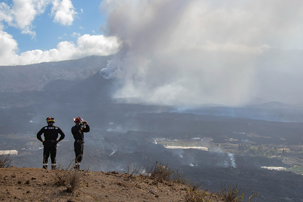 Vicente Soler, vulcanólogo del CSIC, ha indicado que esta nueva pluma (columna) de lava se dirige hacia Las Manchas, pero en las últimas horas ha perdido fuerza "y el viento la tumba con facilidad".
